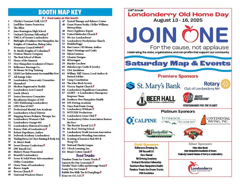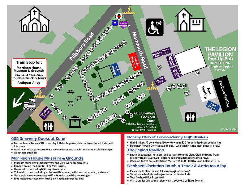 11:30 am to 4:00 pm - Booths on the Common; Morrison House Museum Encampment; Orchard Christian Touch-a-Truck & Antiques Alley; The Legion Pavilion; 603 Brewery Cookout Zone; Strongman Contest; Artists Alley Craft Fair; Bandstand Entertainment